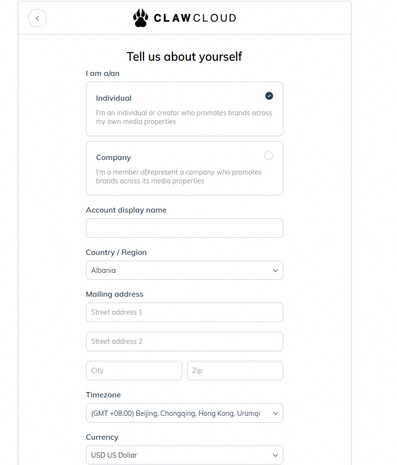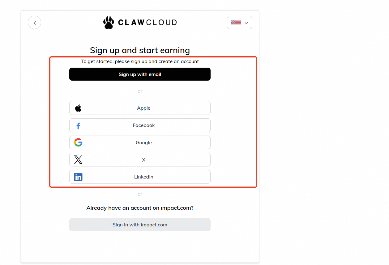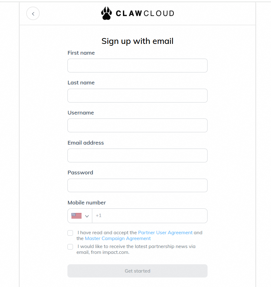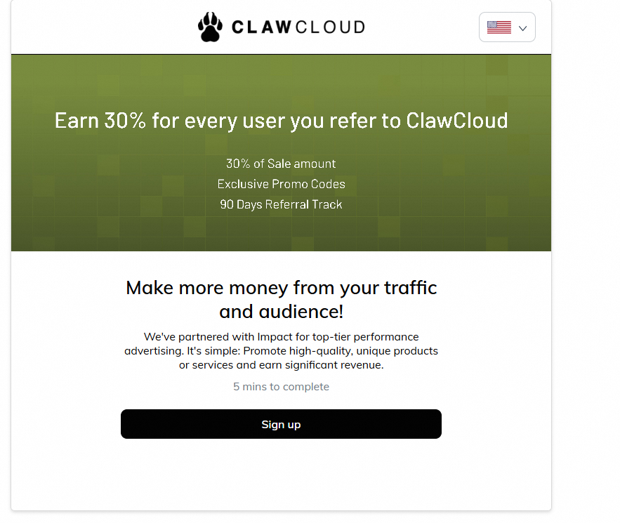 Click on the CLAWCLOUD invitation link: http://app.impact.com/campaign-campaign-info-v2/Clawcloud-(Singapore)-Private-Limited.brand ,click "Sign Up".