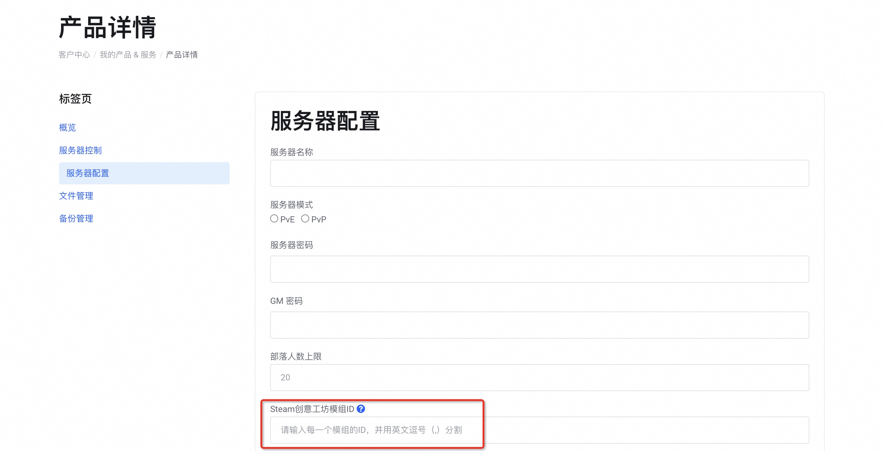 找到每一个模组的专属模组ID,并复制到ClawCloud的控制台中的「服务器配置」。如需上传多个模组,需要用英文逗号(,)将多个模组隔开,即可立即生效。