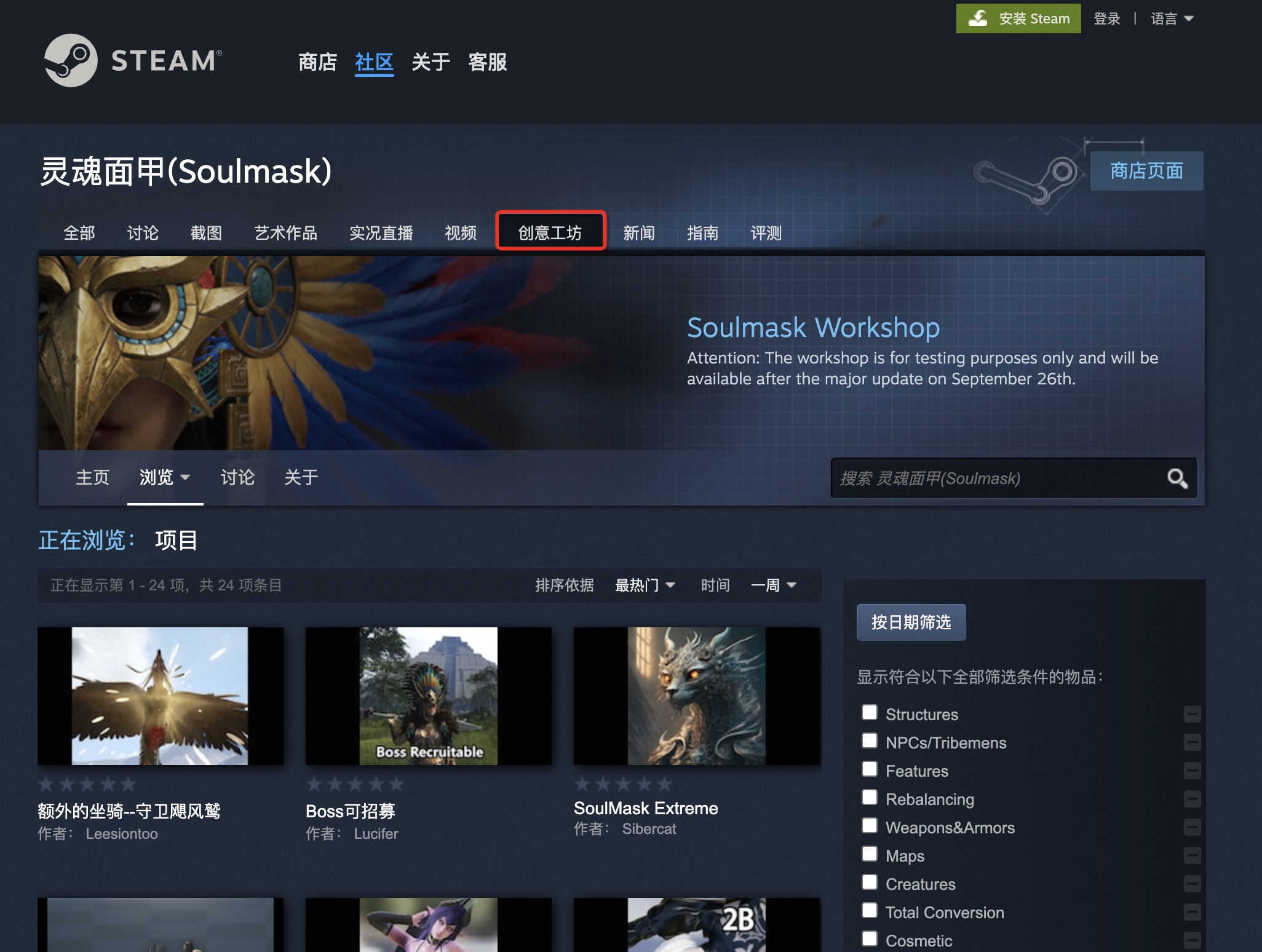 从灵魂面甲的创意工坊中选择您喜爱的模组:https://steamcommunity.com/workshop/browse/?appid=2646460